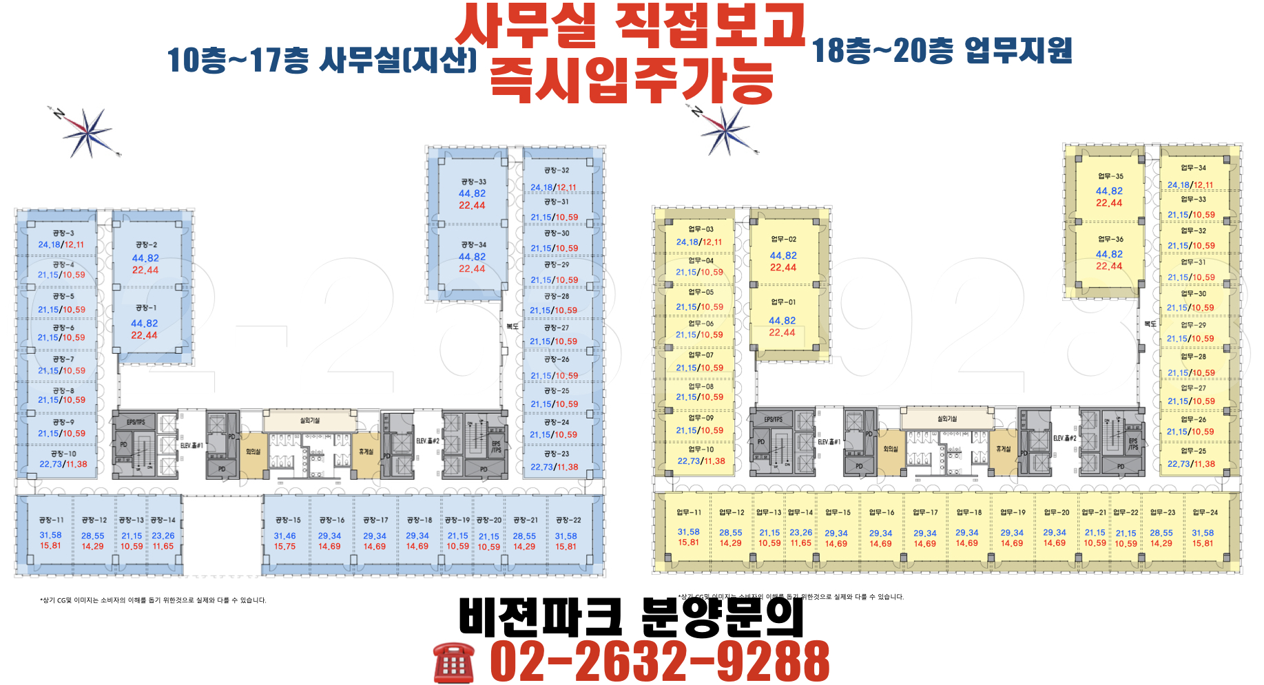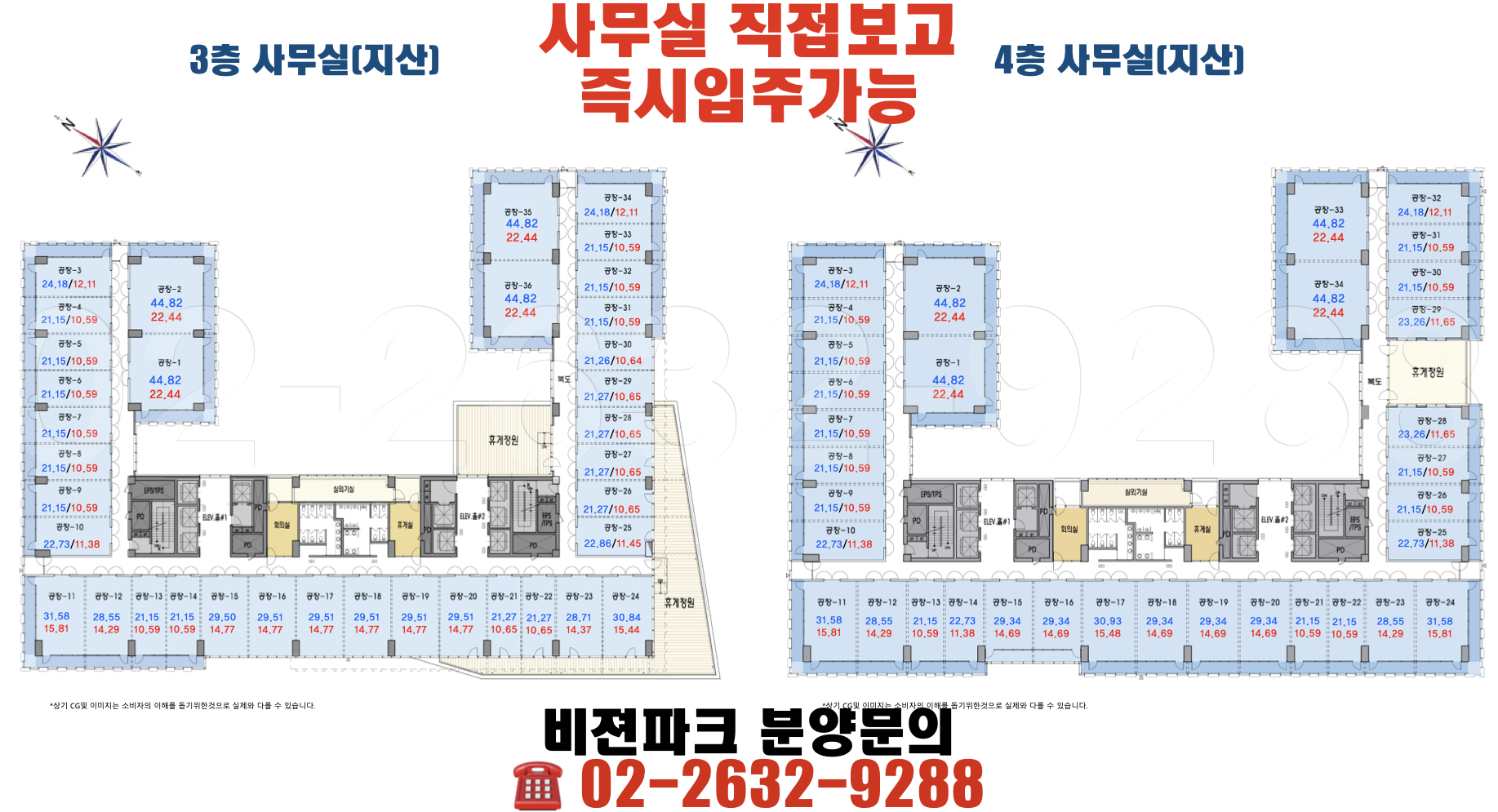 비젼파크는 선시공 후분양으로 준공된 상태로 현장 직접와서 사무실보면서 분양가능!