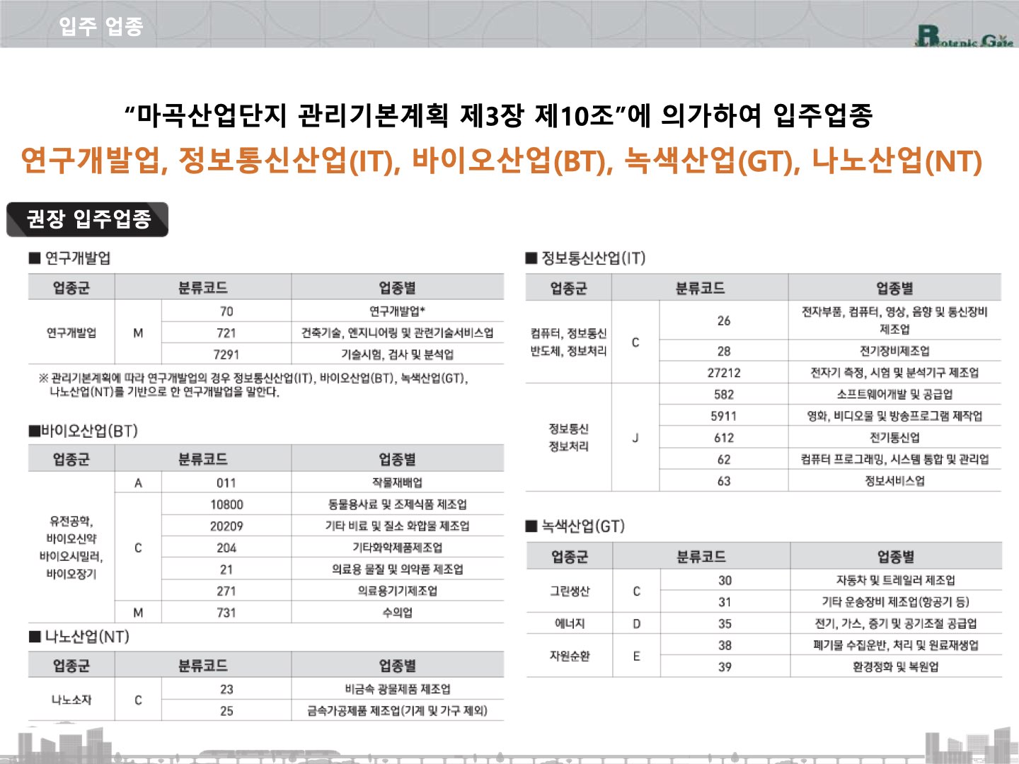 마곡 산업단지 입주업종