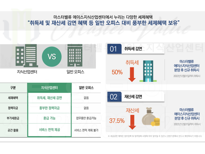 마스터밸류 지식산업센터 입주자를 위한 세금감면혜택 및 금융혜택