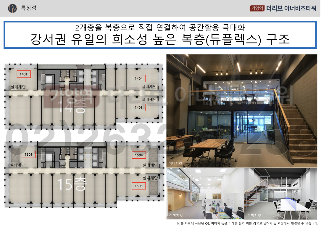 특별한 듀플렉스 특화설계로 탁트인 층고로 공각효율성과 개방감 있는 사무실!